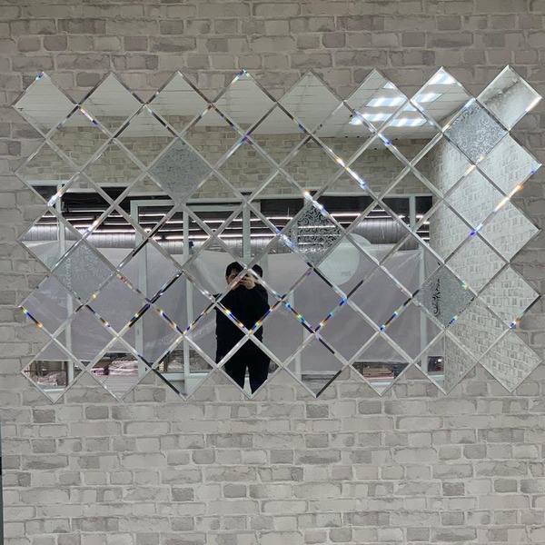 Использована зеркальная плитка "вытянутый ромб" с фацетом.